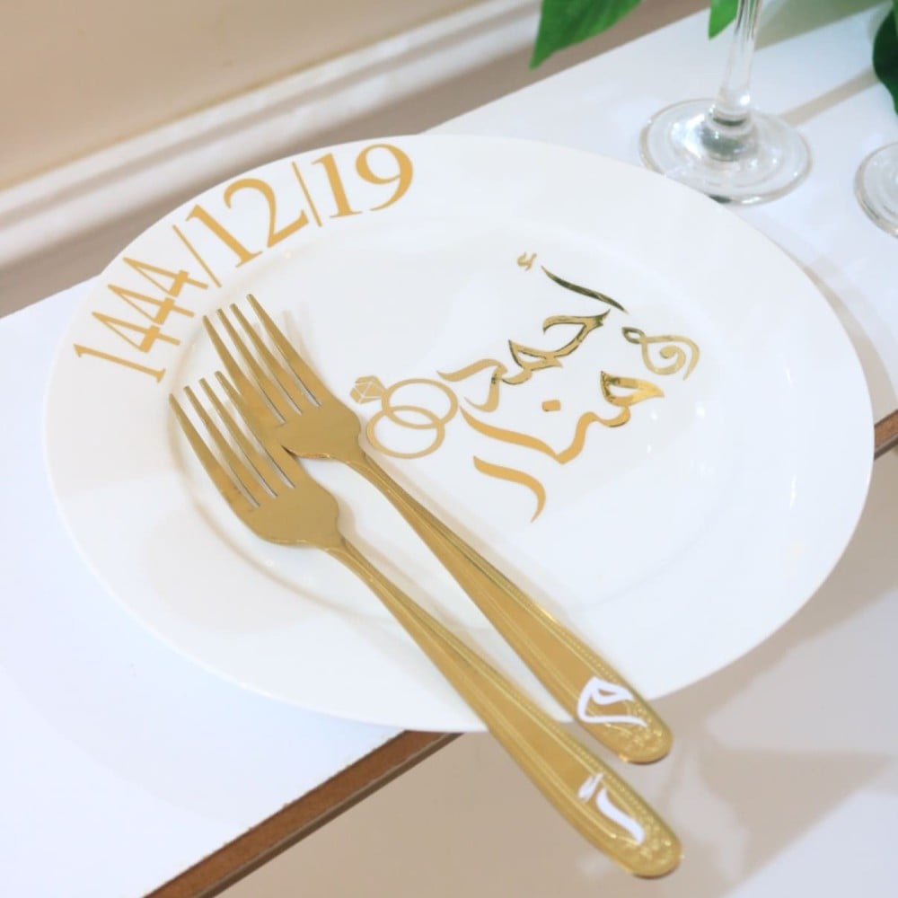 - يحتوي على ( كاستين - شوكتين - سكين و حامل الكيك - صحن )