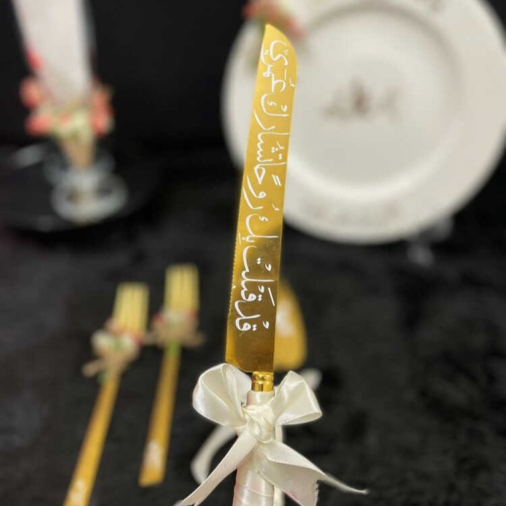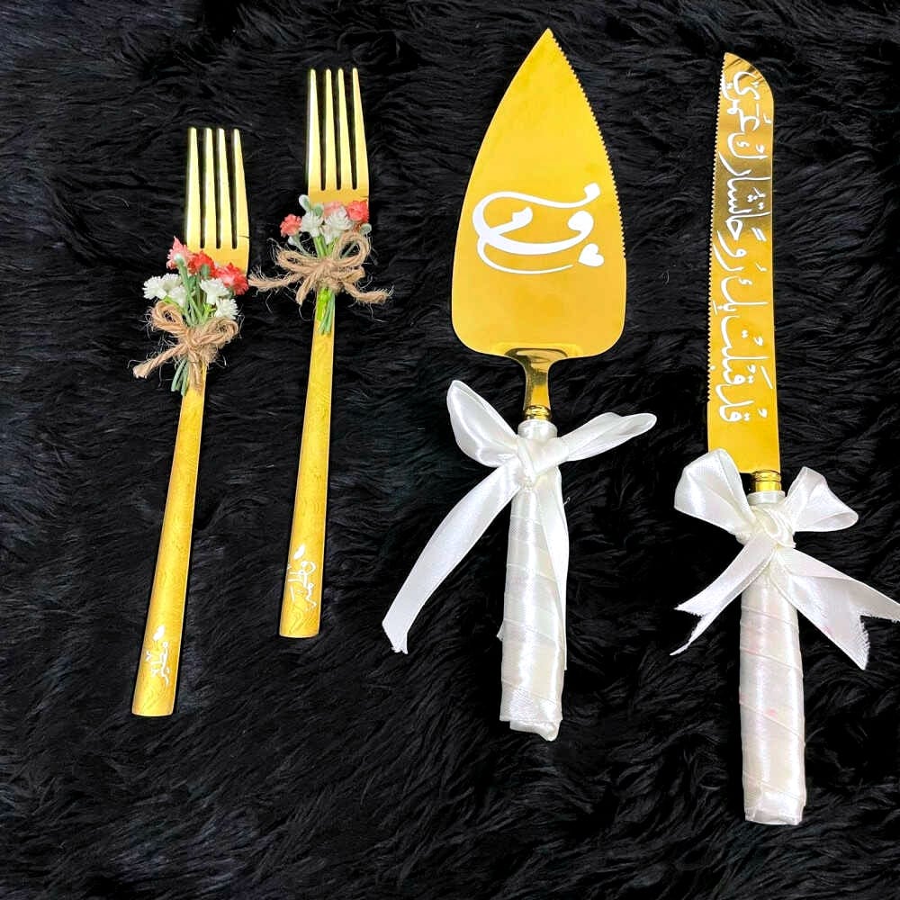 - يحتوي على ( كاستين - شوكتين - سكين و حامل الكيك - صحن )