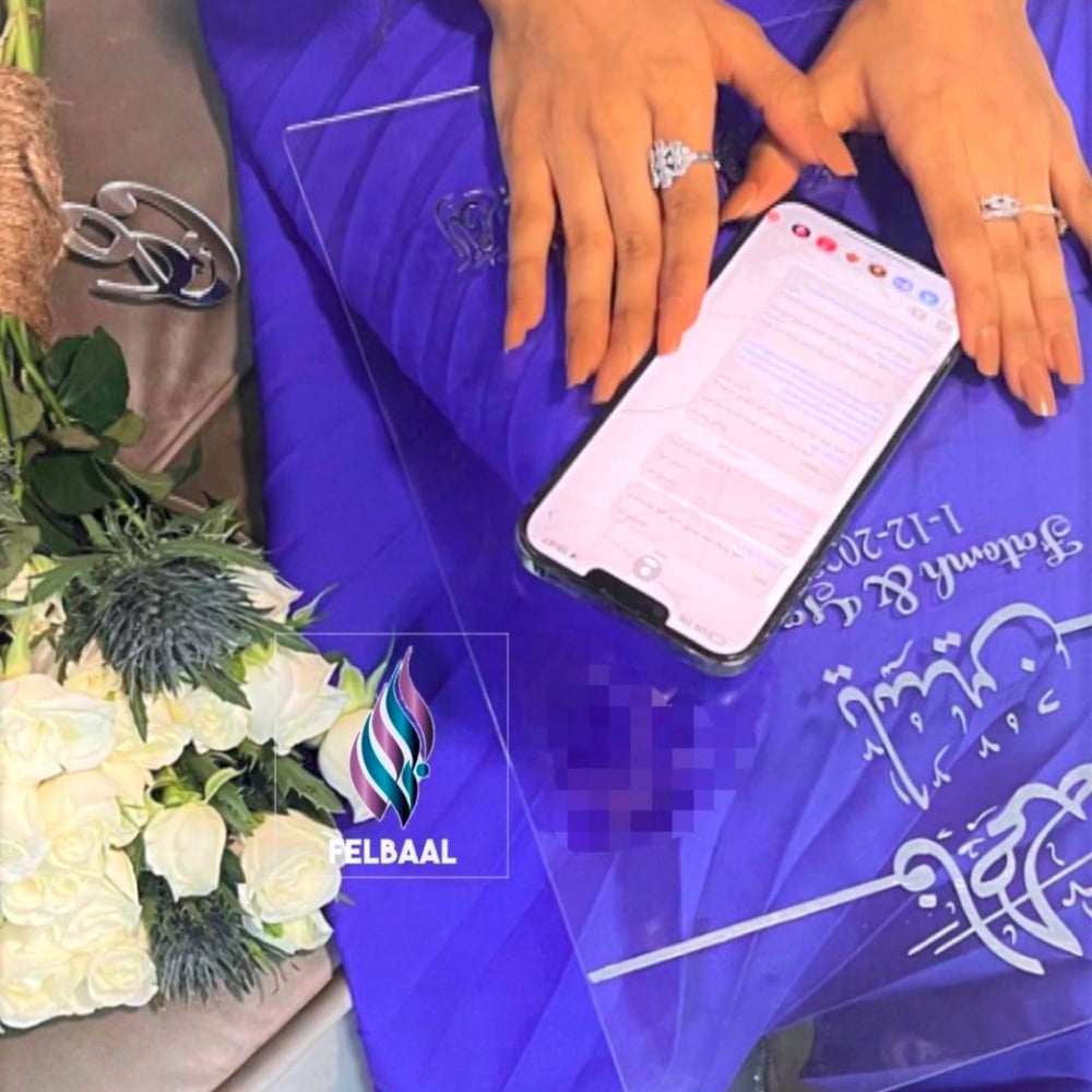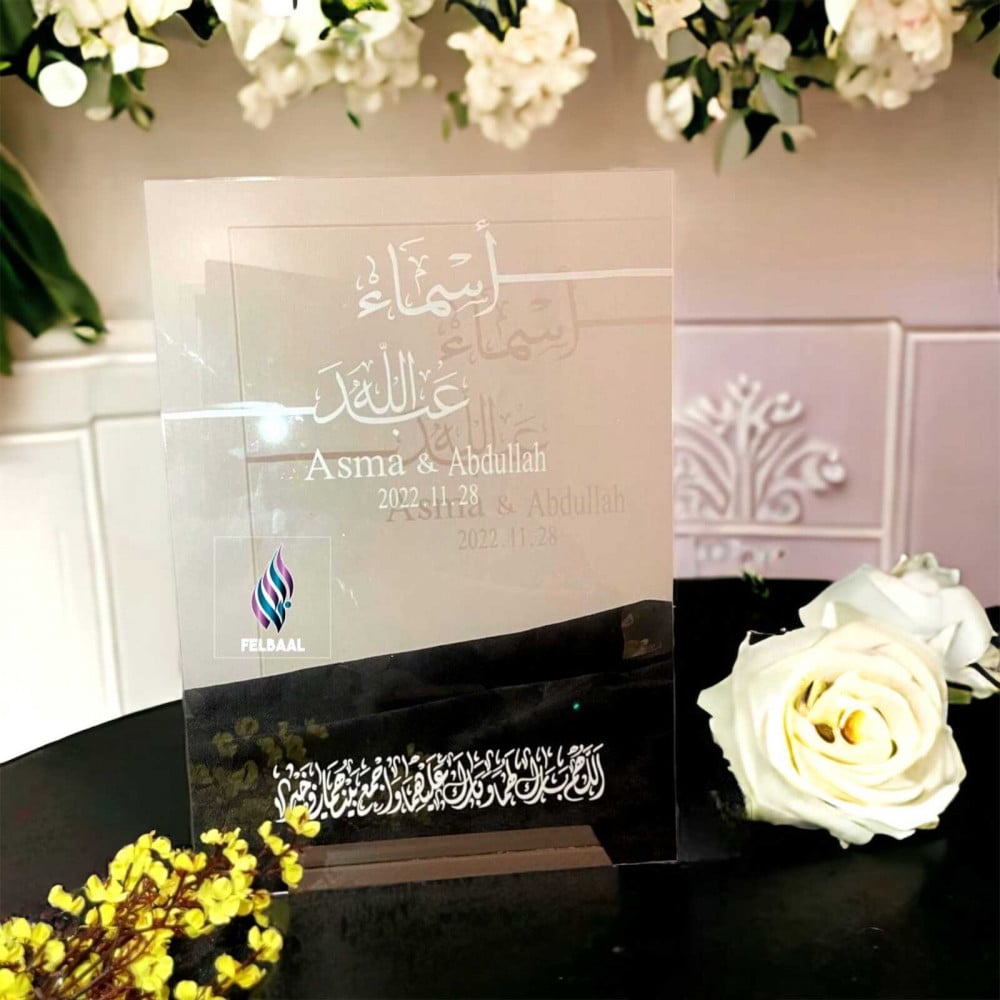 لوح لتوقيع عقد القران بأسماء العروسين ، مناسب لتخليد الذكرى و التصوير .