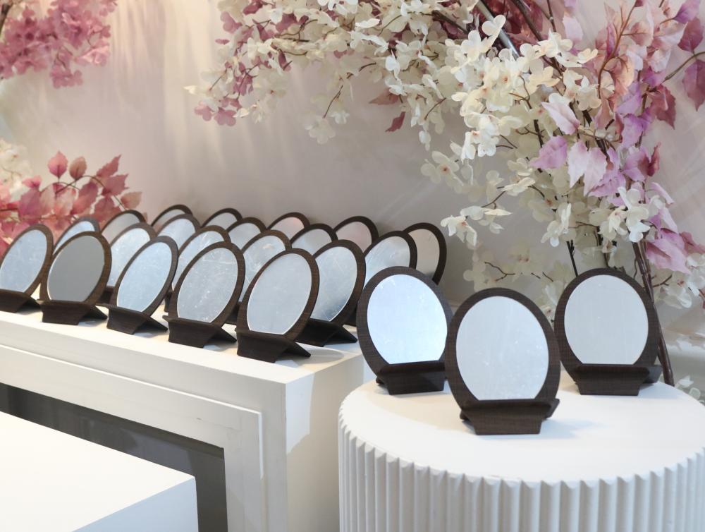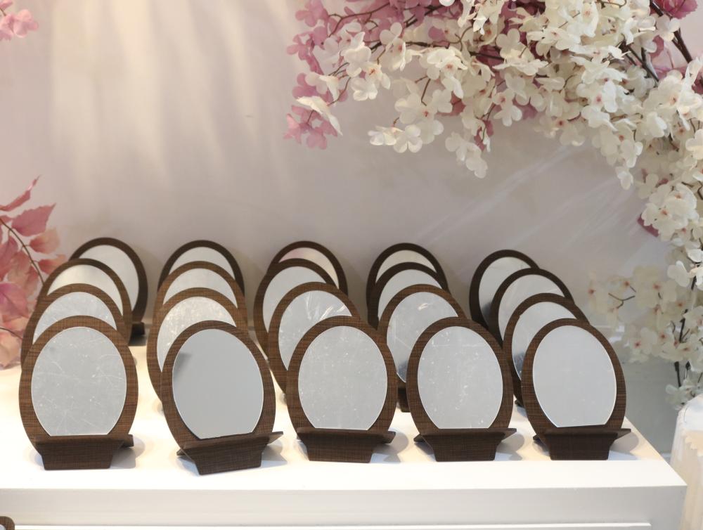 مرايا خشبية ميني مناسبة لجميع المناسبات للتوزيعات يمكنك اضافة الاسم او العبارة حسب الطلب..